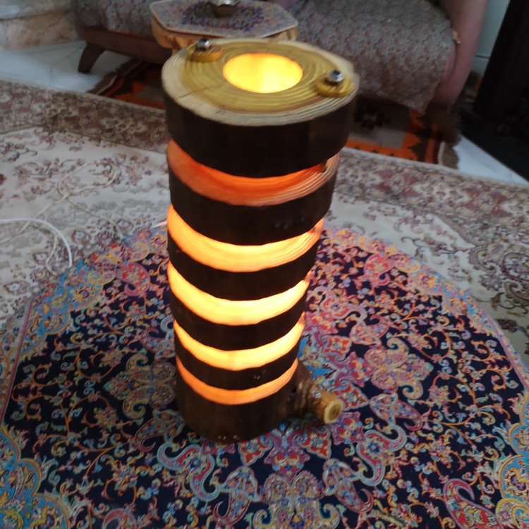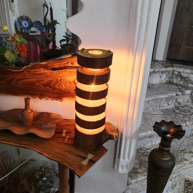آباژور کنار سالنی طبقاتی سایز متوسط محصولی بسیار زیبا و جذاب که بصورت یونیک و تک نسخه توسط استاد کاران ماهردر مجموعه گالری چوب لوکس تولید شده