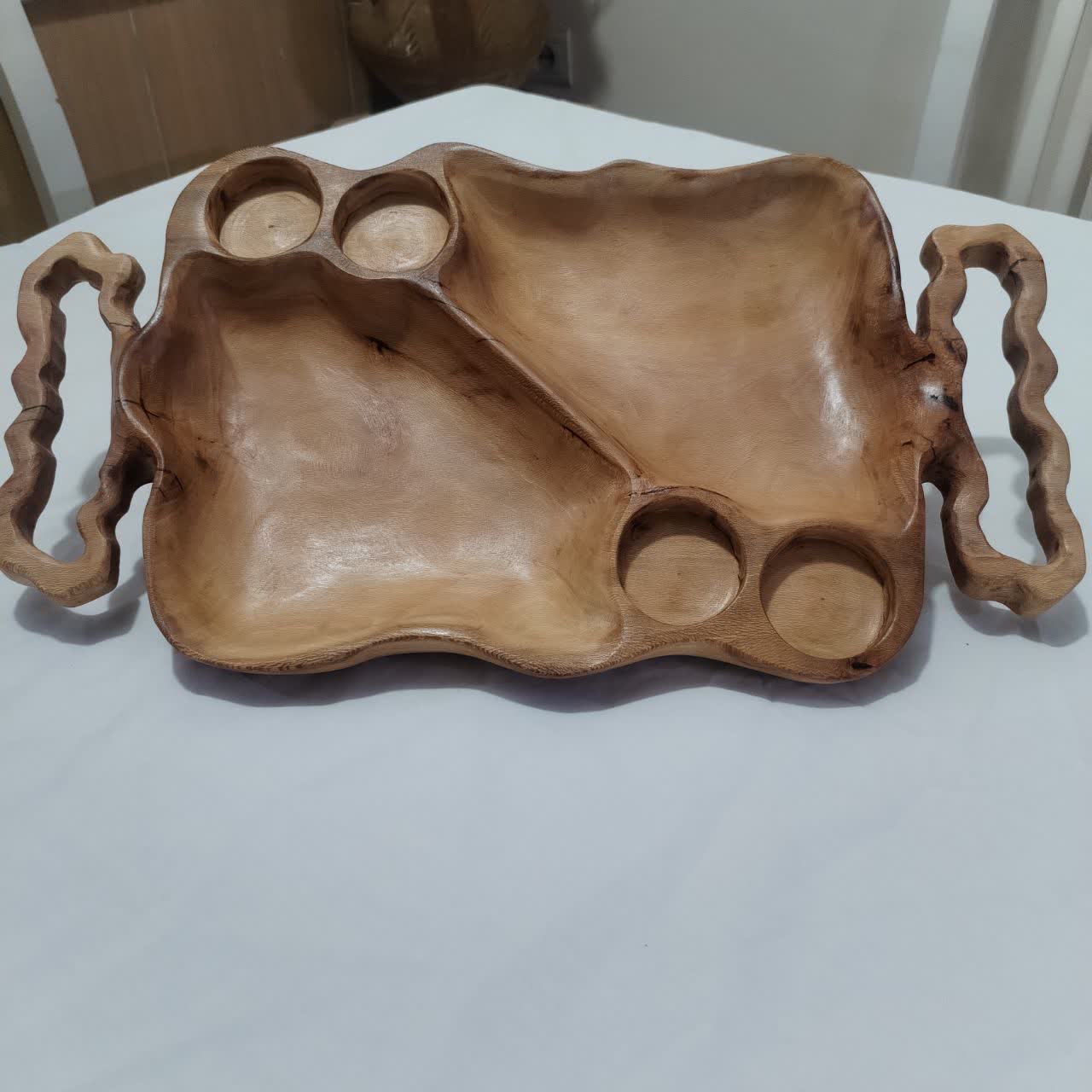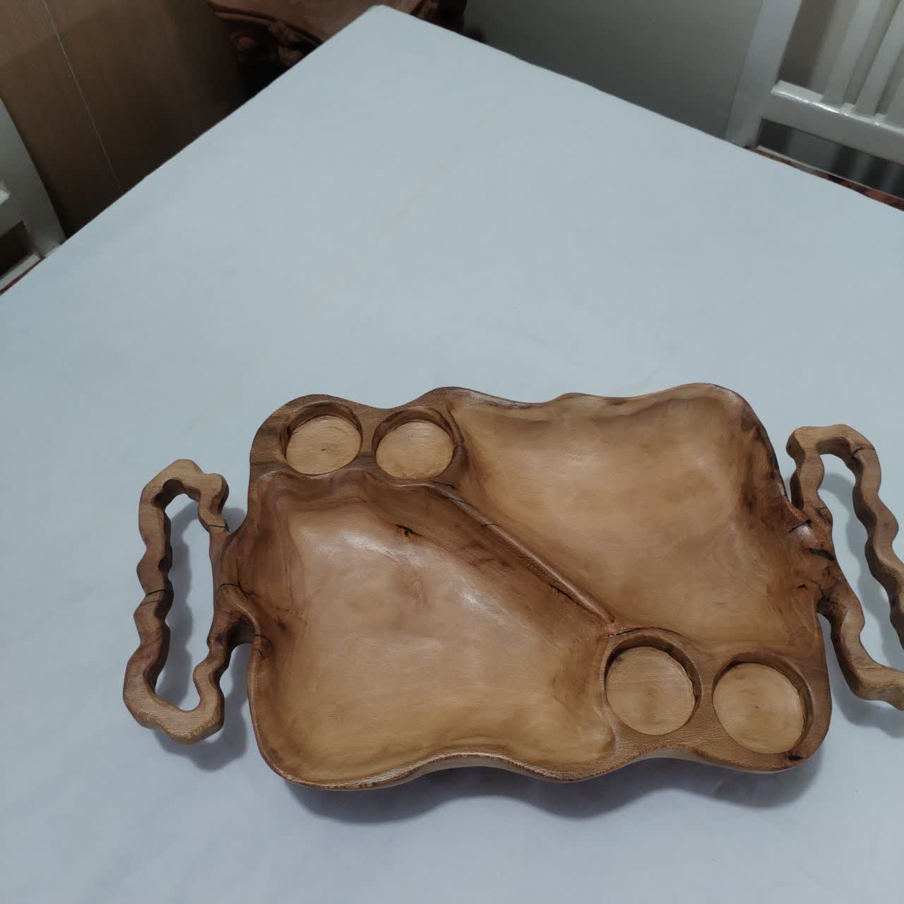 این محصول دارای دو دو خانه و چهار محل برای استکان(پیک)می باشد پایه دار و از جنس چوب چنار پوشش محافظتی روغن گیاهی آبگریز مخصوص چوب به دور آن زده شده تا محصول بصورت ارگانیک زدآب شود درضمن محصول دست ساز و یونیک میباشد
